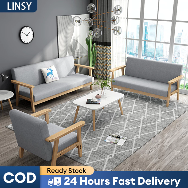 1/2/3 Seater Sofa Bed Solid Wood Sofa Fabric Northern Canvas Sofa Sofa Chair Kerusi Sofa Ruang Tamu Living Room沙发椅沙发床