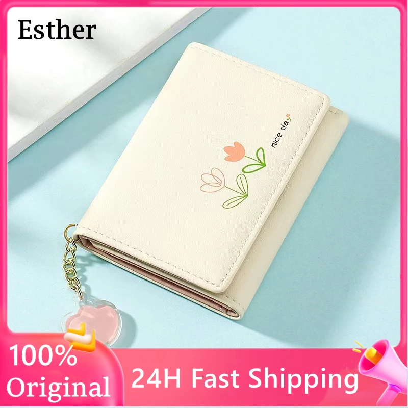 Tulips wallet for woman small wallet trifold wallet with coin purse with card holder pouch wallet mini Heart cute wallet korean style PU leather wallet for women Girl wallets short